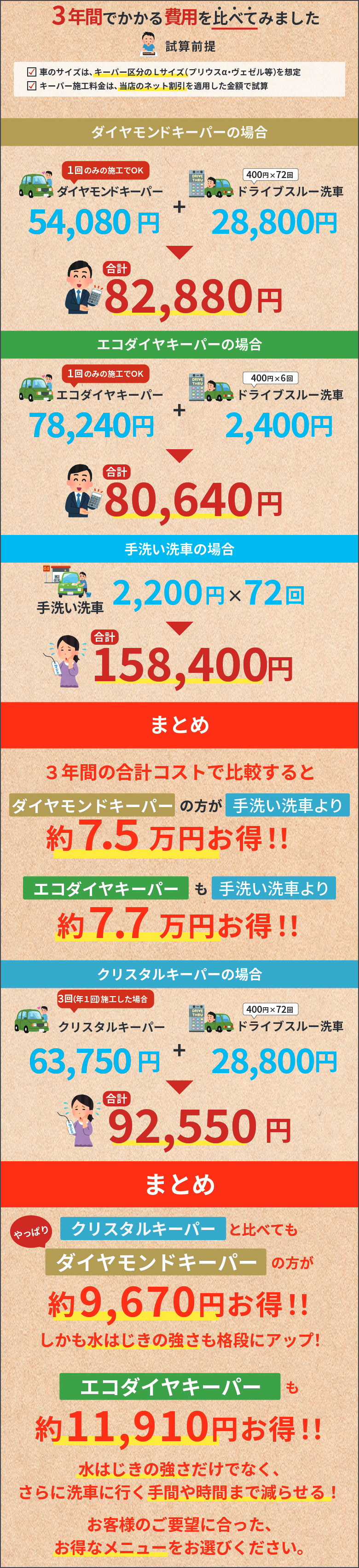 カーディーラーや車販売店のコーティング料金より断然お得!