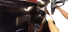 黒く点々となって付着している粘性の強いピッチを、 専用のクリーナーできっちり落とします。